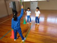 1年生が、いろいろな特訓(笑)に励んでいます。まずは、縄跳びの8の字跳びです。