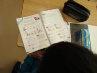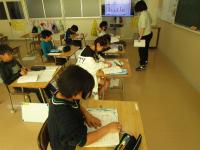 3,4年生の算数の時間です。3年生はテスト中・・・4年生が、折れ線グラフや棒グラフなどのデータを