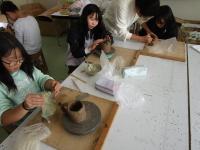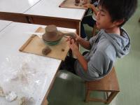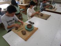 5,6年生が、中島先生に教わりながら「焼き物」用の粘土で作品を作っています。