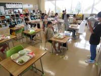給食時間の様子を見ようと3,4年教室に行ってきました。