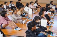 今日、1年生が正院小学校に行って、国語科と体育科の交流学習を行いました。