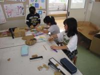3,4年生の図工の時間の様子です。夢中になって作品を作っています。