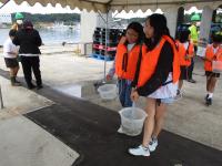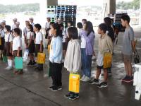 5,6年生がタイの幼魚の放流に、蛸島漁港へ行ってきました。これは市内の業者さんが
