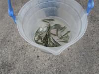石川県農林水産水産課の事業として行われたものです。タイの幼魚の大きさは4~5cmくらいです。