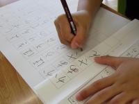 1年生が書写の時間に、硬筆コンクールに出品する作品の清書をしていました。