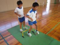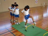 階段を上り下りしたり、ミニハードルをまたいで越えたりと、子供達は遊びの天才です。