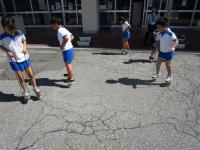 さっそく、子供たちは竹ぽっくりで楽しそうに遊んでいます(笑)