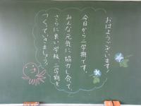 各教室の黒板には、子供たちを迎えるメッセージやイラストが描かれていました♪