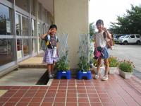 1年生が2人、帰り支度をして児童玄関前にいました。