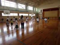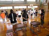 蛸島小の昼休みは、保護者も子供も入り混じって、汗だくになりながら