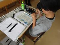 墨の付け方などを学んでいます。緊張するなあ。
