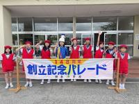 6月5日、お天気に恵まれ、創立記念パレードが行われました。子ども達は、練習成果を発揮し、堂々と鼓笛行進を行い、町の皆様から盛大な声援を受けました。皆さんから、応援されていることを肌で感じ、自己肯定感を高めることにつながりました。10時からは、運動会。今年初めての取組、応援歌「ゴーゴーゴー」や、リズムダンス「メラ」を元気に踊って、ご来場の皆様に、一体となった元気な姿をお見せすることができました。アンコールでは、職員も参加させてもらい、子ども達の喜ぶ姿を見ることができました。他の競技では、子ども達が力いっぱい躍動する姿や、係の仕事を頑張る姿が見られ、すばらしい運動会になりました。
