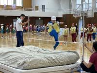 6月8日 健民体育館で、市内の5年生が集まり、体育交歓会が行われました。中学校の体育の先生から、ハードルの跳び方や、走り幅跳びの仕方を教えてもらい、技能を高めました。また、参加した他校の児童と交流を深める機会になりました。