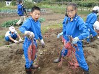 表彰式の後,防犯農園へ移動し芋掘りが行われました。子ども達は大きく成長した芋を掘り起こし,歓声を上げていました。とれたサツマ芋は,長寿園・美笑苑・保育所さんに届けました。学校給食やなかよし会でも使わせていただきます。蛸島地区防犯委員会・公民館・少年補導員等,多くの皆様,ご協力をありがとうございました。