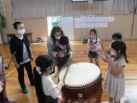 10月13日(火)地域の指導者、室谷美恵子様,洲﨑普美代様,田中佑里恵様が来校され,2回目の太鼓教室が行われました。2回目とあって,今年から参加している1年生もぐんぐんと上達しています。大ばいも、覚えてきました。11月14日(土)に開かれる学習発表会での発表に向けて練習を重ねています。