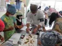 10月15日(木)に3~6年生が和菓子作りに挑戦しました。県職業能力開発協会の事業です。まずは「コスモス」と「山土産(栗)」の生菓子を自分たちで作りました。簡単そうに見えても、やってみると、なかなか難しかったようです。