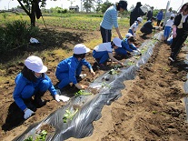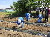 5月21日(火)、午後から防犯イモ苗植えを行いました。少し天気が心配されましたが、イモ苗植えの時間が近づくにつれ、天気が良くなりました。
