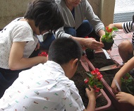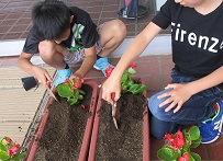 6月7日(金)14:00~ 人権の花として、ベゴニアやプランター、土、肥料などを贈呈していただき、人権擁護委員の方と全校児童で苗植えを行いました。