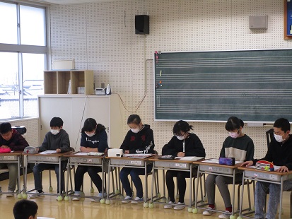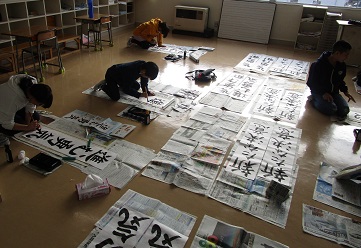 今日から3学期が始まり、始業式の後に書初め大会を行いました。