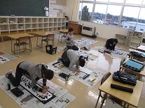2018年1月9日 10時50分今日から3学期が始まり、始業式の後に書初め大会を行いました。