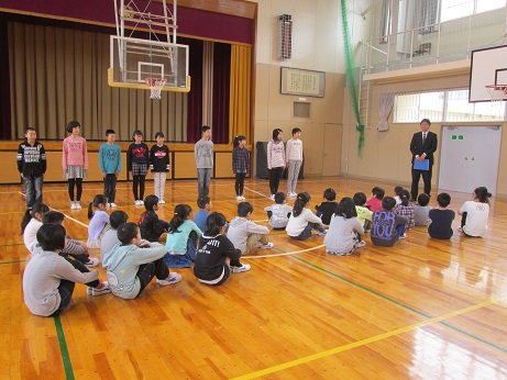 今日の児童集会では前期の代表委員会の任命式を行いました。