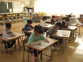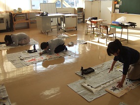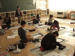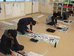蛸島小学校では、毎年この日に書初め大会も行います。