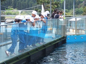 水族館では、たくさんの海洋生物をみることができ、アシカ・イルカショーでは、一つ一つの活動に驚きがいっぱいでした。