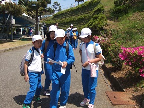 午後からは水族館内をクイズラリーで回りました。なかなかみつけにくいものもあり苦労しましたが、みんなで相談する場面も見られ、ここでも縦割り班の仲が深まったようでした。