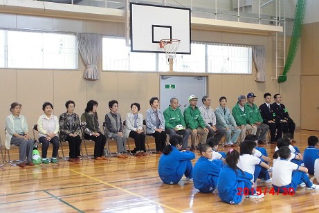 今年度も地域のみなさんの有志で結成していただいた見守りたいの出発式が行われました。