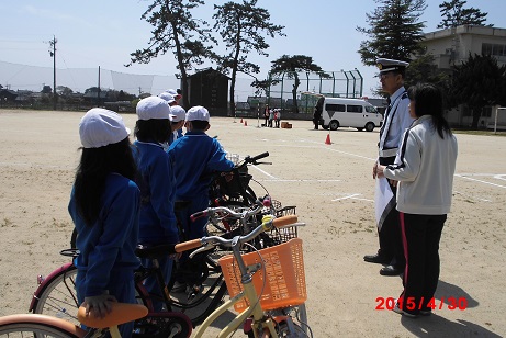 快晴の天気の中、交通安全教室が行われました。