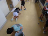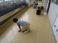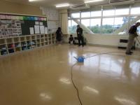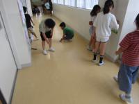 廊下や教室(1,2年教室と3,4年教室)の床の汚れ落としです♪