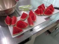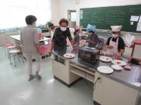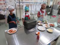 1,2年生が、育てていた野菜を収穫して、ミニパーティーをしていました。