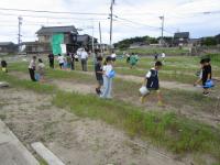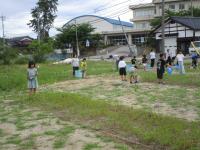 子供たちは、夏休み前の最後の水やりのために、コスモス畑に来ています。