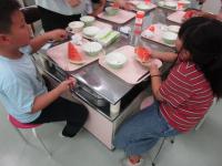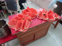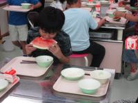 蛸島小の冷蔵庫でキンキンに冷やした大きくて甘いスイカを(笑)、