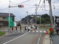 昼休みに、全校の子供たちで、新しくできた信号機のところまで行って、