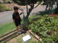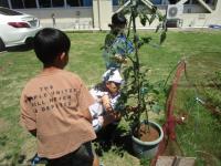 1,2年生が学級園で育てていたミニトマトが、カラスに食べられてしまったと、朝から大騒ぎです♪