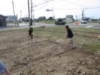 今朝は、全校の子供たちでコスモス畑の水やりの日です♪