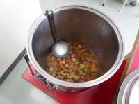 給食の様子です。すでに子供たちは食べ始めていましたが、食缶の中には、おかずやスープが残っています。