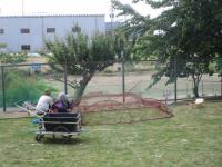 そして、何と、お手持ちの道具をいろいろと使いながら、防鳥ネットをパパッと作り、