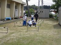 運動場が使えないので、スペースや走る距離を工夫して練習しています。