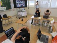 子供たちは、いろいろな学校の友達の音読や発表を聞くことができて楽しそうです。