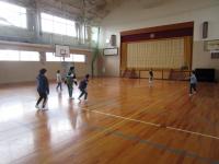 体育館の中で遊んでいる1,2年生は、ドリブルでもシュートでも