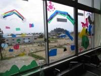窓ガラスに、きれいな色のセロハンが貼られ、アートになっていました♪