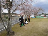 うまく根付いてくれるといいなあ♪ 蛸島小学校の周りの桜は、3分咲きです。
