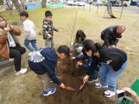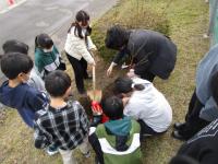 みんなで交代交代で、大きめの穴をあけて、そーっと苗木を植えました♬