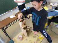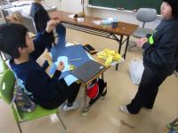 3年生が理科の「磁石の性質」の学習のまとめとして、磁石を利用したおもちゃを作っていました♫