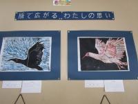 3階の5,6年生教室の前には、卒業生の2人が作った作品がありました。
