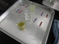 「わさび」を溶いた液体や、砂糖水、だしの素を溶いた液体を調べていました(笑)。