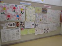 階段の踊り場に掲示してある、全国各地からいただいたメッセージ等を