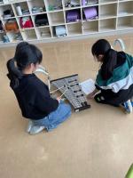 口でリズムを唱えながら、指づかいや鳴らし方を習っています♩